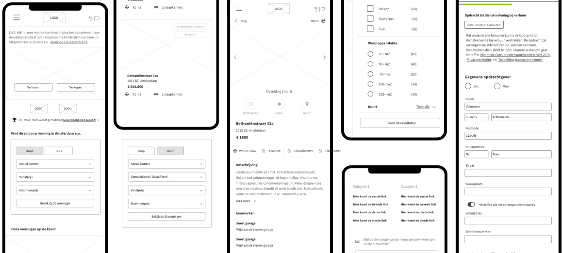 In de eerste fase zijn we om tafel gegaan voor een concept ontwerp van de site. Hierbij ligt de focus op de functies van de website en de gebruiksvriendelijkheid ervan. Vanaf dag 1 is onze partner in crime Vorm2 betrokken bij JLG Real Estate. Het makelaarskantoor heeft een duidelijke identiteit en een herkenbare huisstijl. Aan Vorm2 de taak om deze onder de loep te nemen en waar nodig te voorzien van een frisse blik. Vorm2 is erin geslaagd om de identiteit van JLG Real Estate te vertalen naar toffe designs die de bouwstenen van de nieuwe website hebben gevormd.