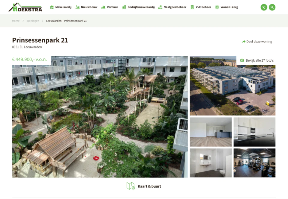 Makelaardij Hoekstra is sinds jaar en dag een begrip binnen onze provincie. Ze zijn de grootste makelaar van Friesland en voorzien in huur- en koopwoningen, nieuwbouw, bedrijfsonroerendgoed en VvE Beheer. Zocht je echter voorheen een woning op hun website, dan had je de kans om te verdwalen.