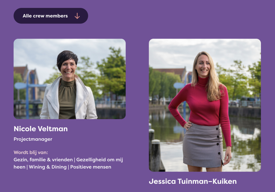 Het is belangrijk om dit verhaal duidelijk te maken op de website. Dit realiseren we bijvoorbeeld met behulp van cases en van foto's van de crew.