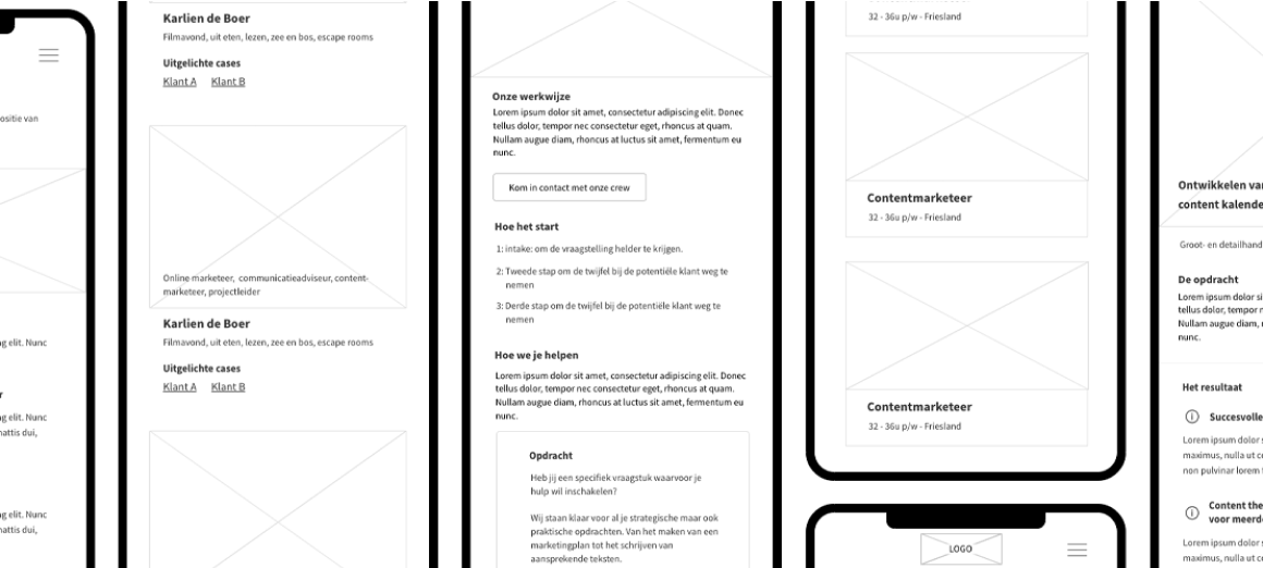 Op basis van de doelstellingen en ambitie van Marketing Crew hebben we de wireframes voor de website uitgewerkt. Hierbij zorgen we voor een optimale gebruikers ervaring, door de doelen van de website snel en eenvoudig bereikbaar te maken.