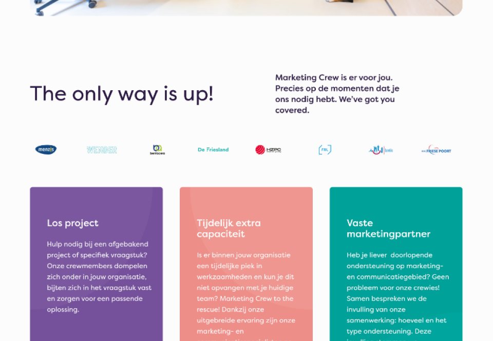 Marketing Crew heeft een focus op haar crew en cases. Deze zijn eenvoudig uit te lichten om een goed beeld te geven wat Marketing Crew doet en voor nieuwe klanten kan betekenen.