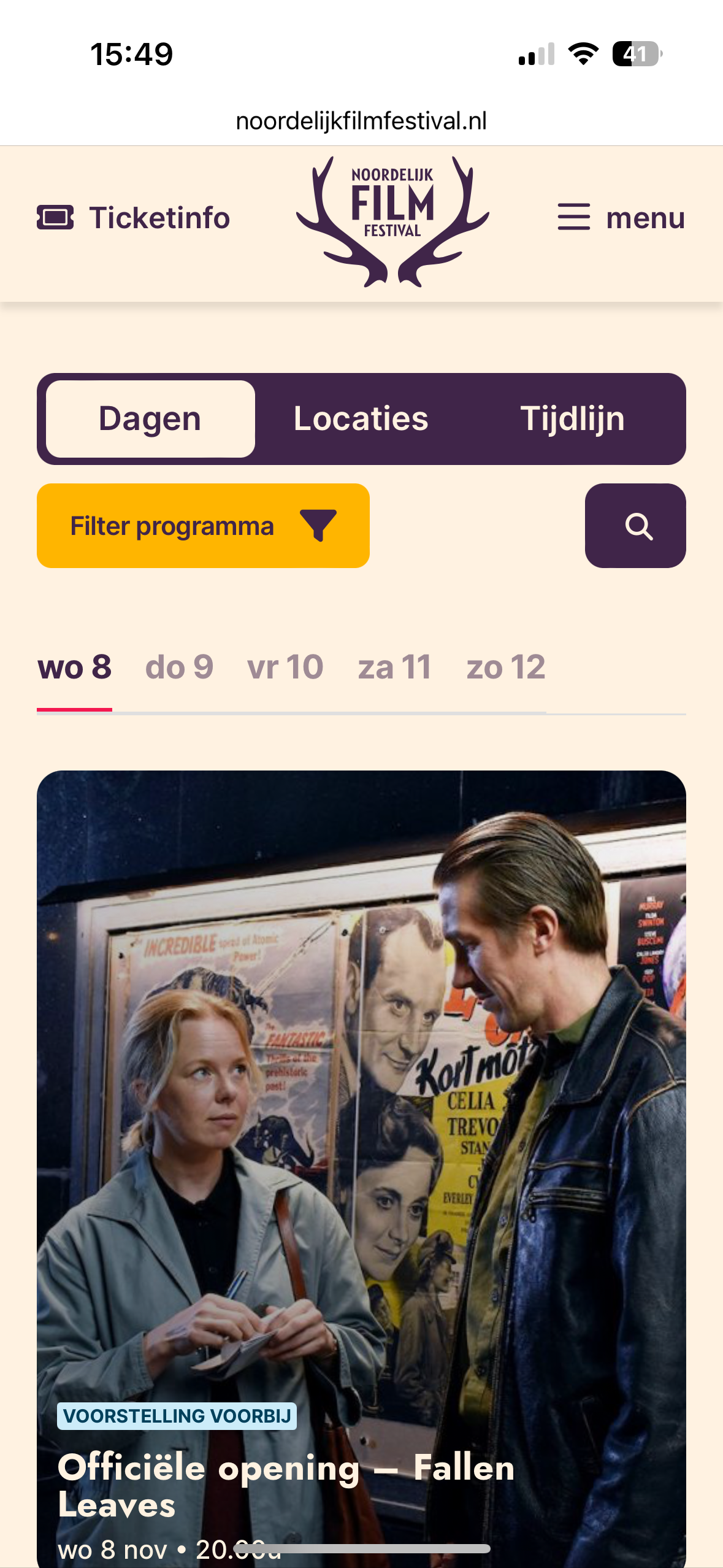 Het aanbod uit het CMS FilmChief wordt middels onze koppeling direct en volledig in stijl getoond op de site van het Noordelijk Film Festival.