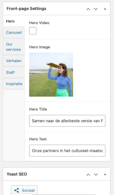 Wel is binnen de pagina's gebruik gemaakt van ACF PRO’s flexibele content, zodat de pagina’s qua indeling volledig vrij ingericht kunnen worden. Er zijn daarin geen beperkingen.
